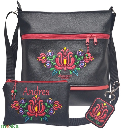 Hímzett 30x30-as Matyó virágos pakolós szett HungarianFolkart28 táska+neves neszi+kulcstartó