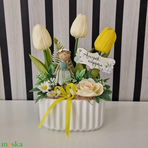 - Anyag/Összetevő kaspó, selyemvirág, real touch tulipán