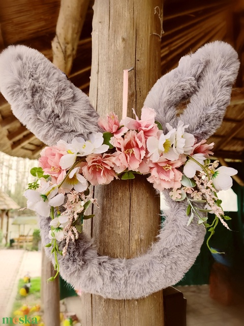 Húsvéti kopogtató, szörmés nyuszi szürke
