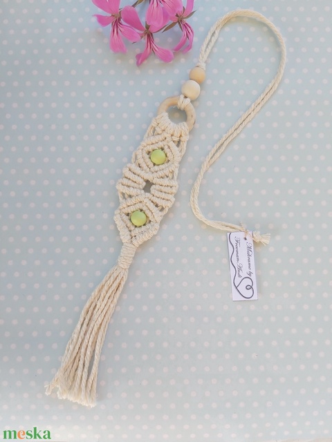 - Anyaga: makramé fonal, fagyöngy, fa karika