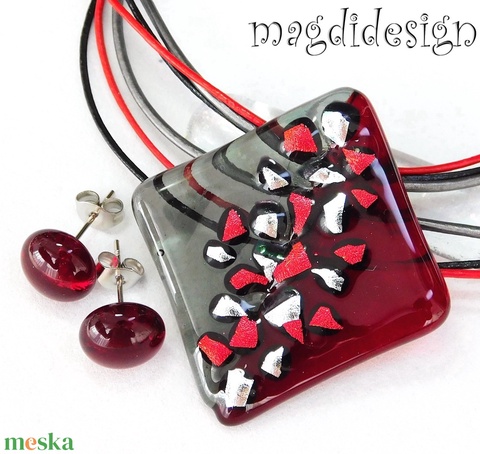 Csillogó dichroic szürkében pinkben üvegékszer szett nyaklánc fülbevaló