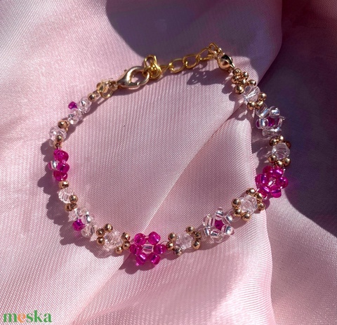 "Auróra" rózsazsín fehér virágos gyöngykarkötő