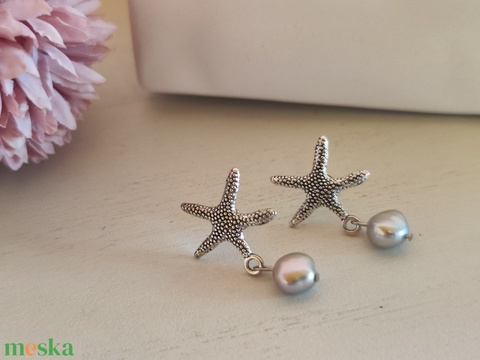 Tengericsillag fülbevaló tenyésztett gyönggyel!