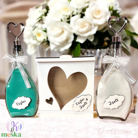 ESKÜVŐI HOMOKÖNTŐ SZETT RÓZSASZÍN-FEHÉR CSIPKÉS