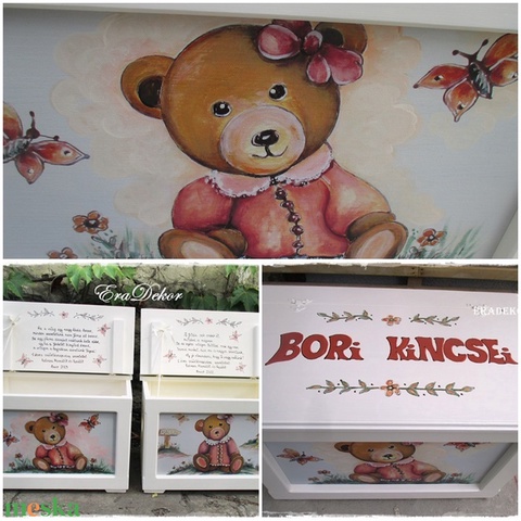 A kézműves tárgyak jellegéből adódóan mindegyik termék egyedi, és a megrendelő által megadott keresztnévvel készül, ezért két teljesen egyformát nem tudunk készíteni. A képeken szereplőhöz hasonlót, HATÁSÁBAN megegyezőt alkotunk. Egyedi elképzelés szerinti kéréseket NEM vállalunk.