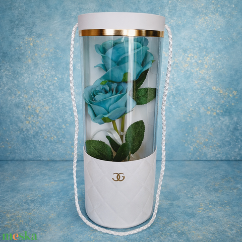 Élethű rózsa virág táskában-kék