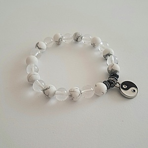 8-as howlit ásvány, 8-as hegyikristály ásvány, jin-jang medál, hematit díszítő elem