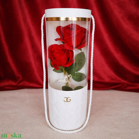 Élethű rózsa virág táskában-piros