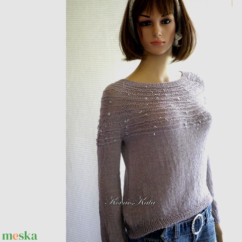 LAZY LINEN / lavender - exkluzív gyapjú-len kézzel kötött pulóver