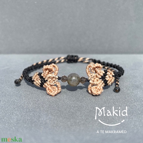 Gondolj rám virág bézs-fekete mikromakramé karkötő