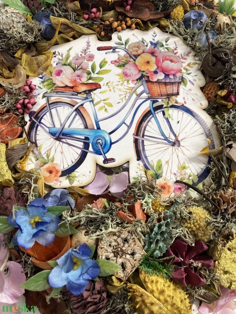 Vidám virágos-bicajos, többévszakos tartós terméskopogtató