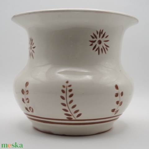 Kézzel készült fehér kerámia váza rusztikus növényi mintával
