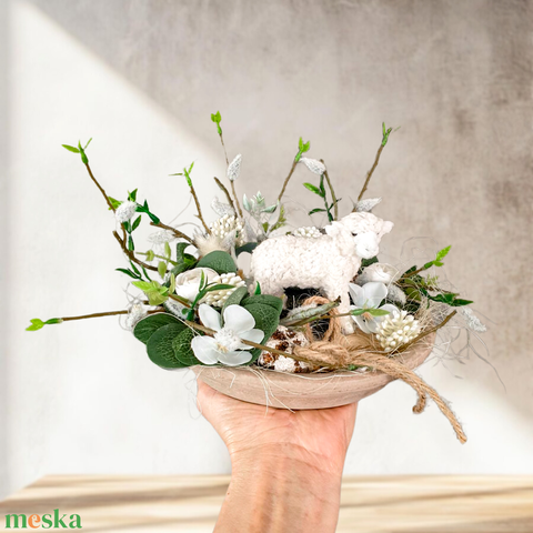 - Anyag/Összetevő kerámia tál, mű levelek, bárány figura