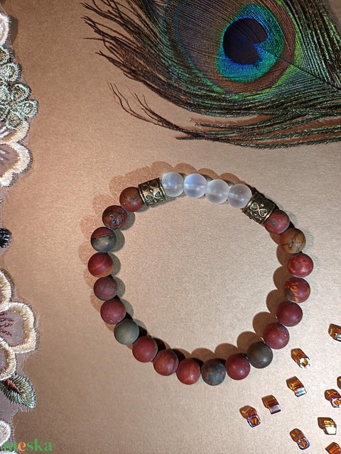 - Anyaga: picasso jáspis, üveggyöngy, fém ötvözet
