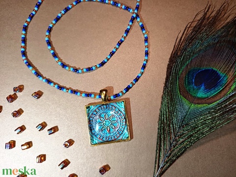 fém ötvözet, üveg, japán gyöngyök, rugalmas damil