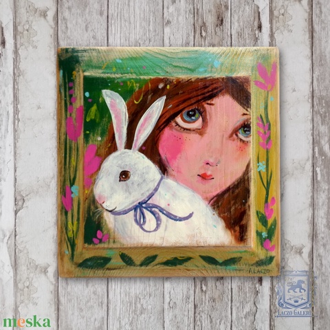 Nyuszit ölelő - Rusztikus Fatábla, Ajándék ötlet - Egyedi Falidísz, Húsvéti Nyúl