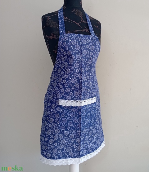 Egyedi női kötény - Kékfestő jellegü tulipàn mintàs kötény