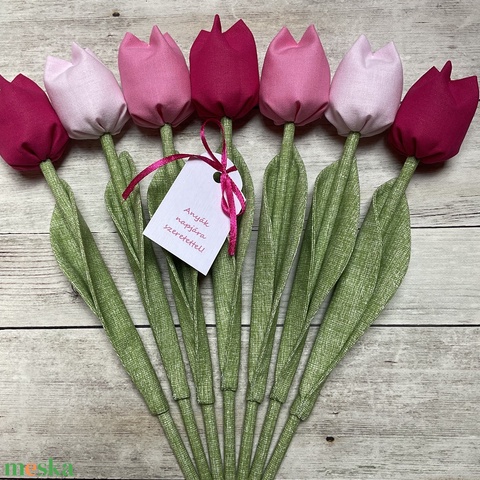 Anyák napi textil tulipánok / szett: 7 db/ ingyen ajándékkísérővel