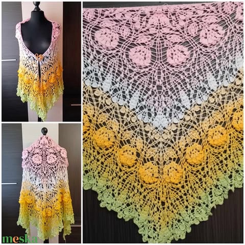 "Napfényes rét virágai" - egyedi horgolt vállkendő