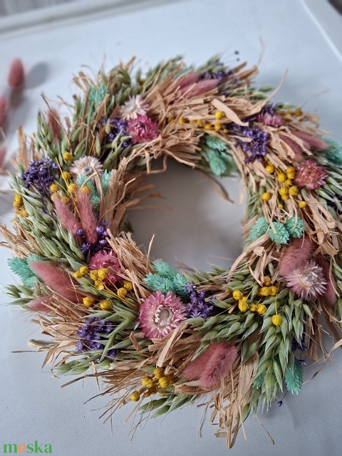 Színes szárazvirágos ajtódísz, koszorú