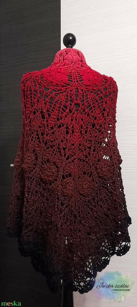 "Rubin rózsa" egyedi nagy horgolt kendő