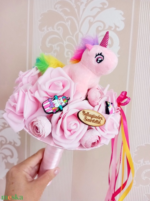 Rózsaszin unikornis ballagási csokor