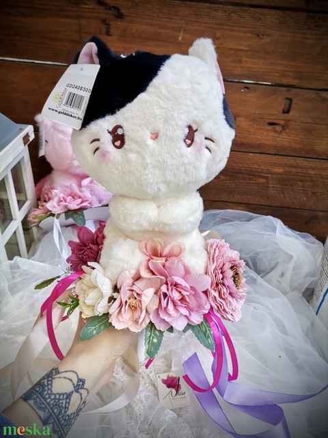 Ballagási csokor cica plüssel, ballagás csokor, óvoda, iskola _cica plüss