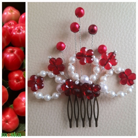 - Anyaga: akril gyöngy, ékszerdrót, fémfésű