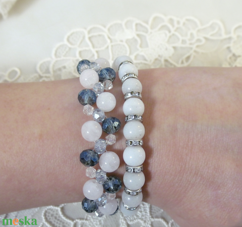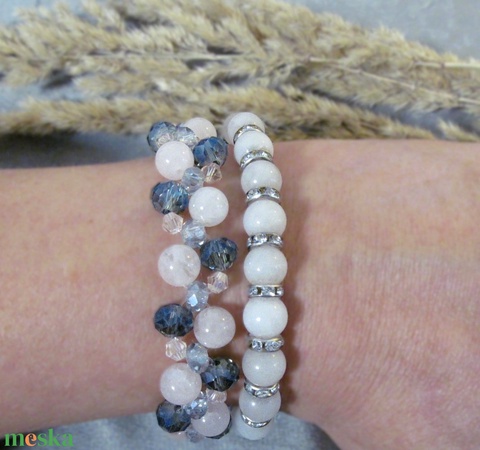 Rózsakvarc és kristály karkötő szett