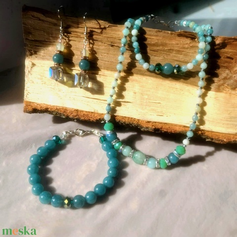 Akvamarin Aventurin ékszerszett Amazon nyugalma – 4 részes ásvány ékszerszett zöld akvamarinnal