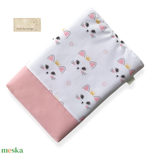 Bélelt könyvtok, cica királylány mintával, akár gombos zárral