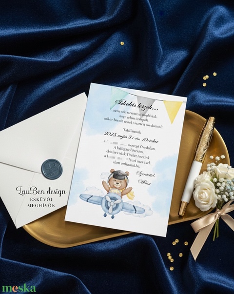 BALLAGÁSI MEGHÍVÓ OVIS, BÖLCSIS GYERMEKEKNEK– PILÓTA MACIVAL | PRÉMIUM, SZEMÉLYRE SZABHATÓ