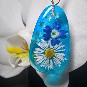 - Anyaga: ékszergyanta, szerelék, virágok, műgyanta, nefelejcs