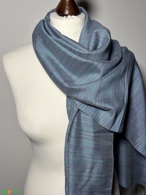 Kézzel szőtt elegáns Kék Selyem Kendő