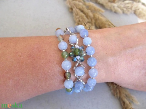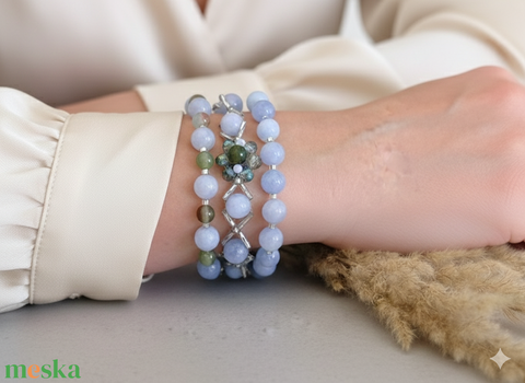 Virágzó harmónia és belső nyugalom akvamarine virágos három részes karkötő szett