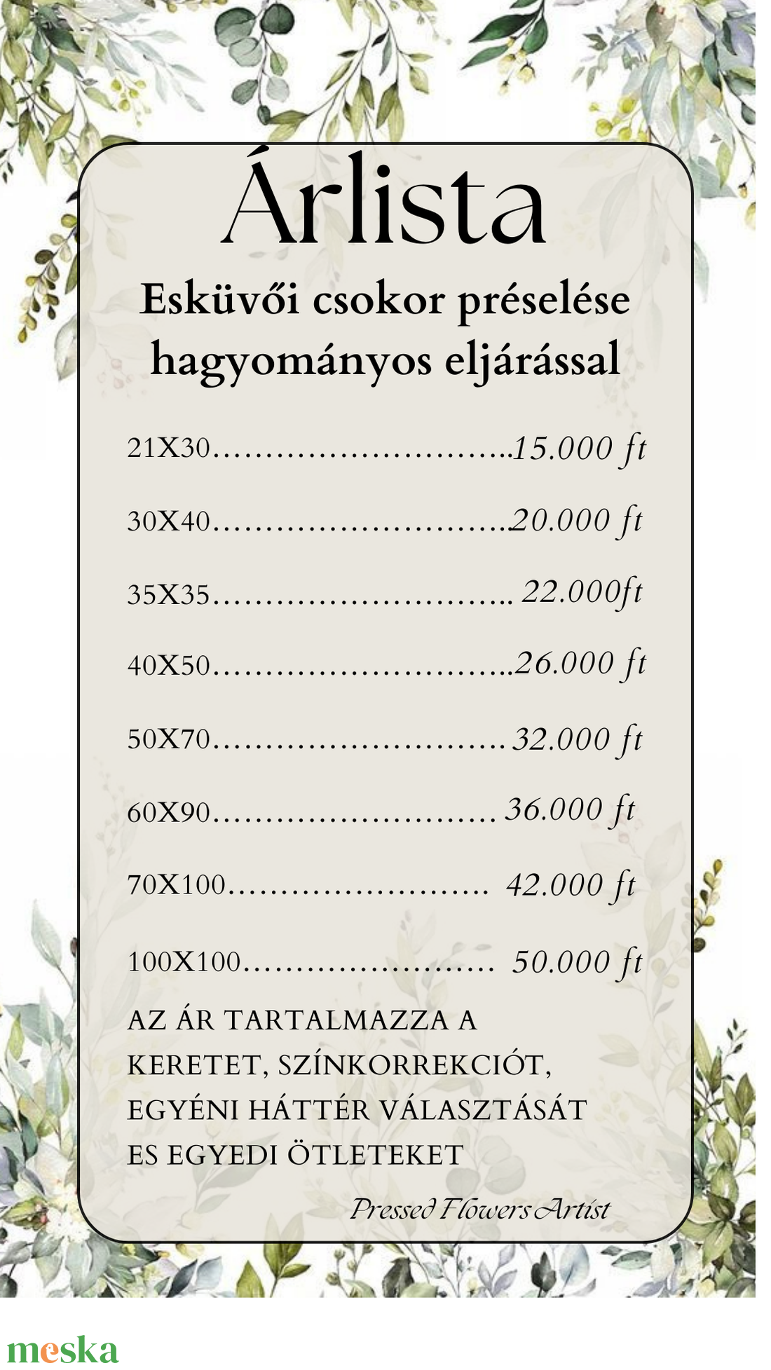 - Anyaga: üvegezett képkeret, préselt virágok és növények