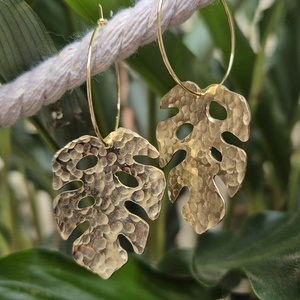 Monstera Vibes. Egzotikus sárgaréz fülbevaló