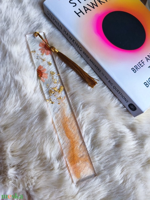 Virágos epoxy könyvjelző, arany