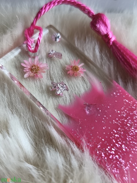 Apró virágos Epoxy könyvjelző, rózsaszín