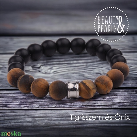 Tigrisszem és Ónix 10 mm FÉRFI ásványkarkötő