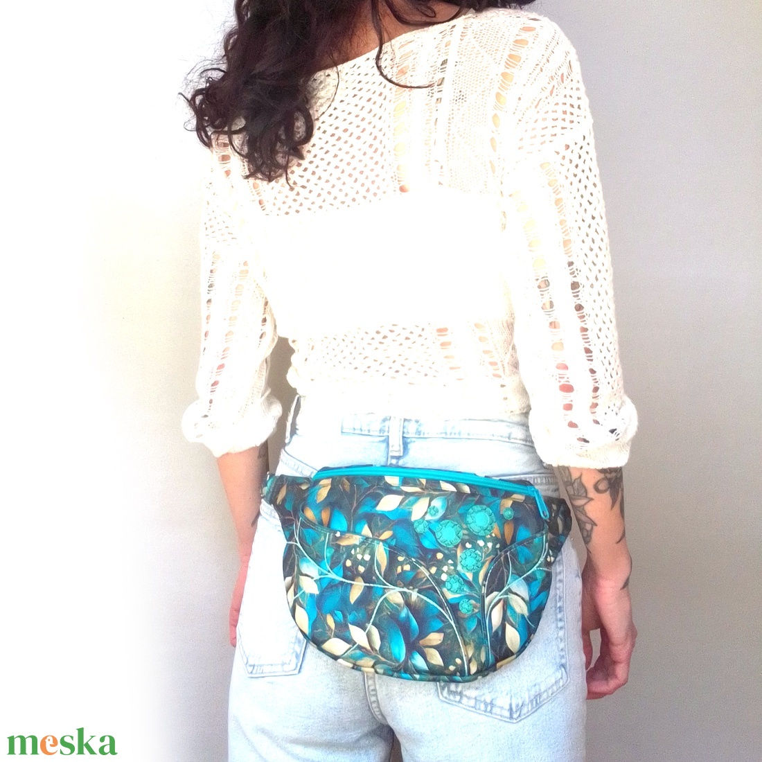- Anyaga: fém karabíner, heveder, cérna, cipzár, műbőr, szivacslap, vízlepergető vászon, cordura