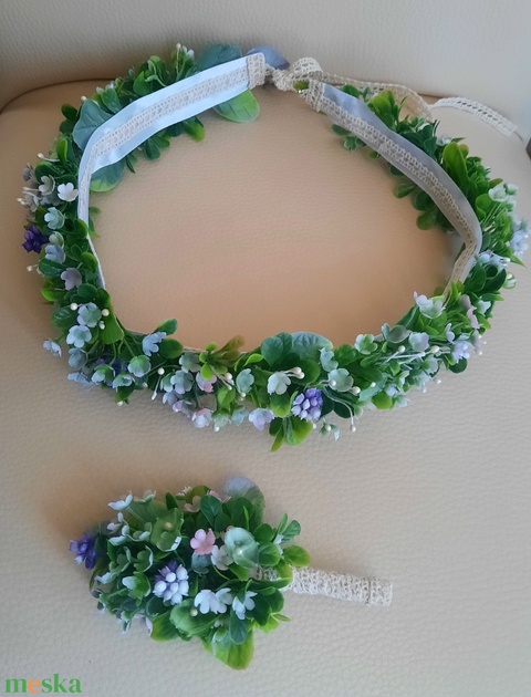 - Anyaga: élethű művirág, szaténszalag, pamutcsipke