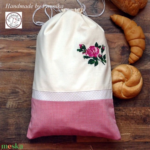Hímzett, rózsás KENYERESZSÁK, PÉKÁRUSZSÁK Frissentartó, Kitörölhető! 33X49 cm a mérete! NoWaste csomagolás