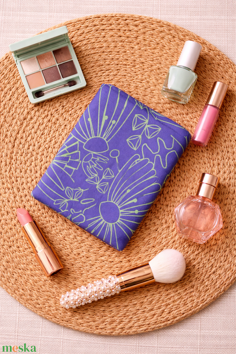 Boho Lila pénztárca - Kártyatartó - lapos neszesszer - hippi mintás piperetartó - csajos neszeszer - tolltartó lányoknak