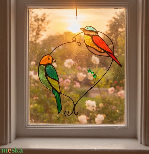 Madárka pár-szeretet drótvázra fűzve