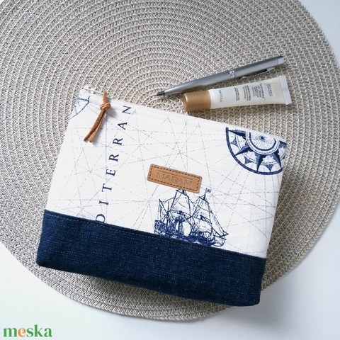 Tengerész stílusú női neszesszer, kozmetikai táska, tok