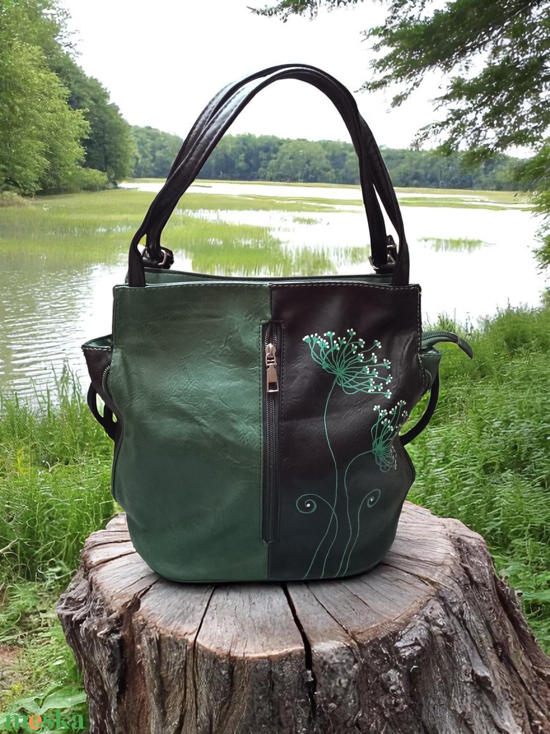 Női műbőr válltáska és hátitáska. Egyedi, kézzel festett motívummal!