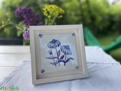 Kézzel festett mázazott portugál csempe virággal/ irisz
