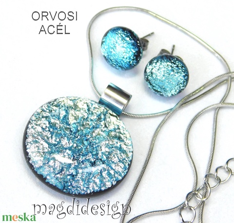 Szikrázó ezüst dichroic üvegékszer szett nyaklánc stiftes fülbevaló