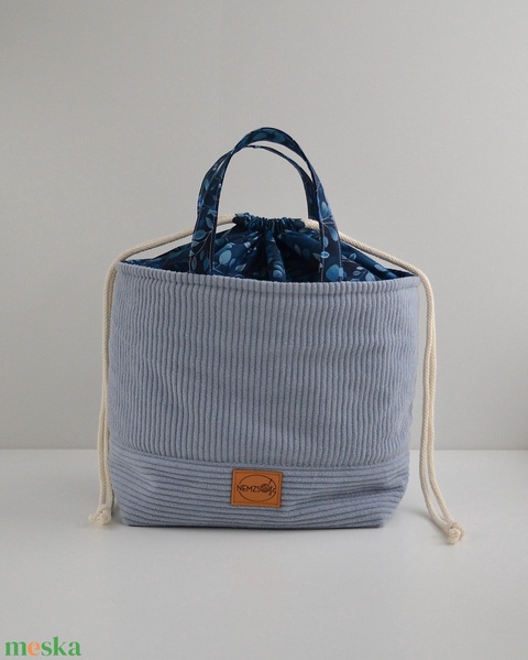Nagy méretű behúzós projekt táska kézimunkához (világoskék kordbársony)